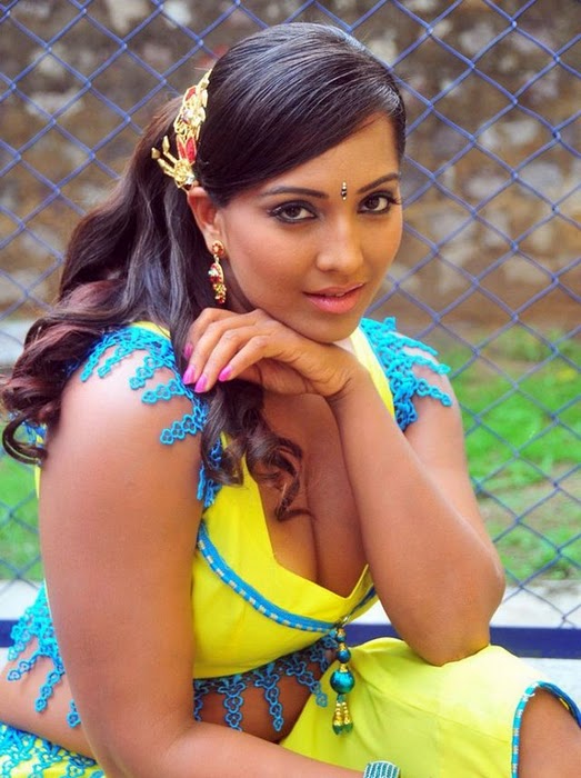 Meghana Naidu Spicy Cleavage Photo in Yellow and Blue Dress